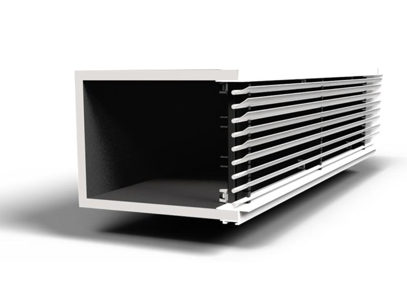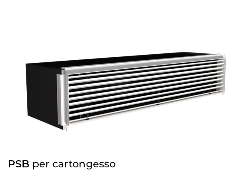 The PSB units are frameless concealed grille plenums featuring rows of white horizontal blades that can be adjusted and easily removed for internal cleaning and maintenance.