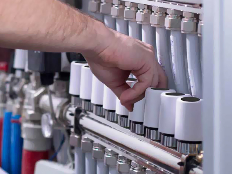 Attuatore a filo per valvole e collettori. In grado di controllare l’apertura e la chiusura nei sistemi di riscaldamento/raffrescamento a pavimento e a soffitto.